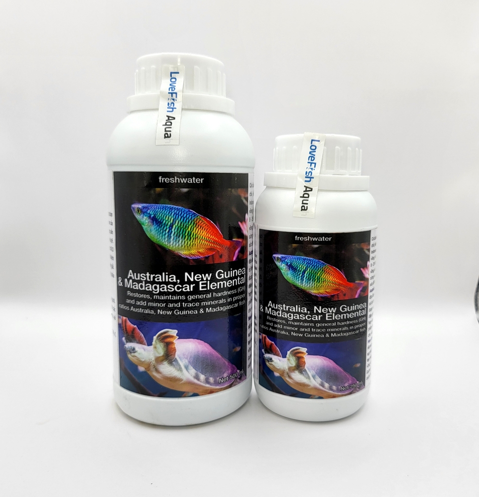 Australia, New Guinea & Madagascar Elemental là phức hợp độc đáo cung cấp các nguyên tố chính, phụ và vi lượng theo tỷ có lợi cho cá được mô phỏng theo lưu vực như cái tên của nó, được sử dụng trong các phản ứng trao đổi chất, tăng cường điện giải và tái tạo thần kinh quan trọng, đồng thời được tích hợp vào các sắc tố sinh học tự nhiên để tạo màu. Chưa có sản phẩm nào trên thị trường hoàn thiên về độ thiết lập biotope cho vùng Australia, New Guinea & Madagascar như Australia, New Guinea & Madagascar Elemental có thể thiết lập độ cứng rất cao với đầy đủ các nguyên tố phụ và vi lượng theo tỷ lệ cho sự phát triển của cá. Nó bổ sung lượng i-ốt cho các phản ứng tạo màu sắc xanh dương lấp lánh trên vảy cá cầu vồng. Cá cầu vồng và cá rồng kim long Úc không ưa muối nên Australia, New Guinea & Madagascar Elemental rất hữu ích khi chữa bệnh bằng cách phục hồi chất điện giải.
